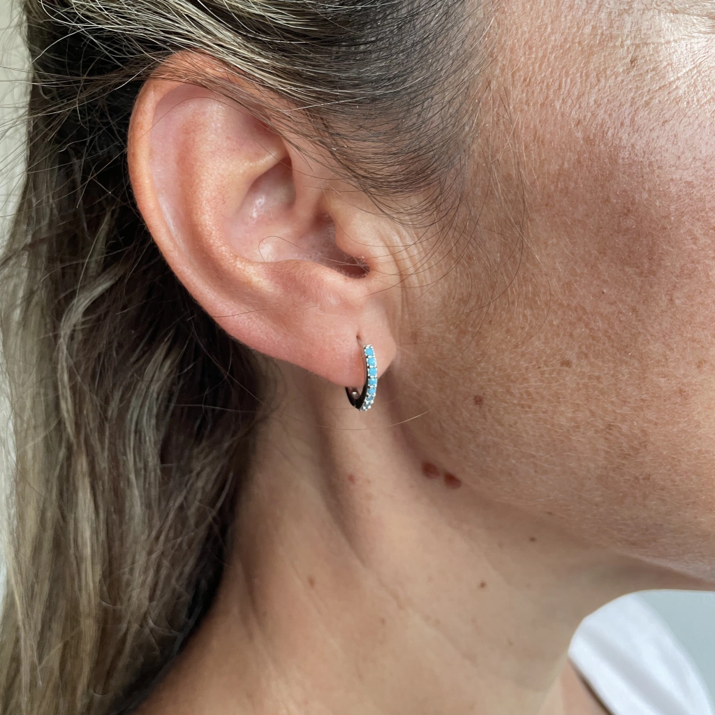 Diseño de Argollitas con circonitas turquesas. Tamaño 12 mm.