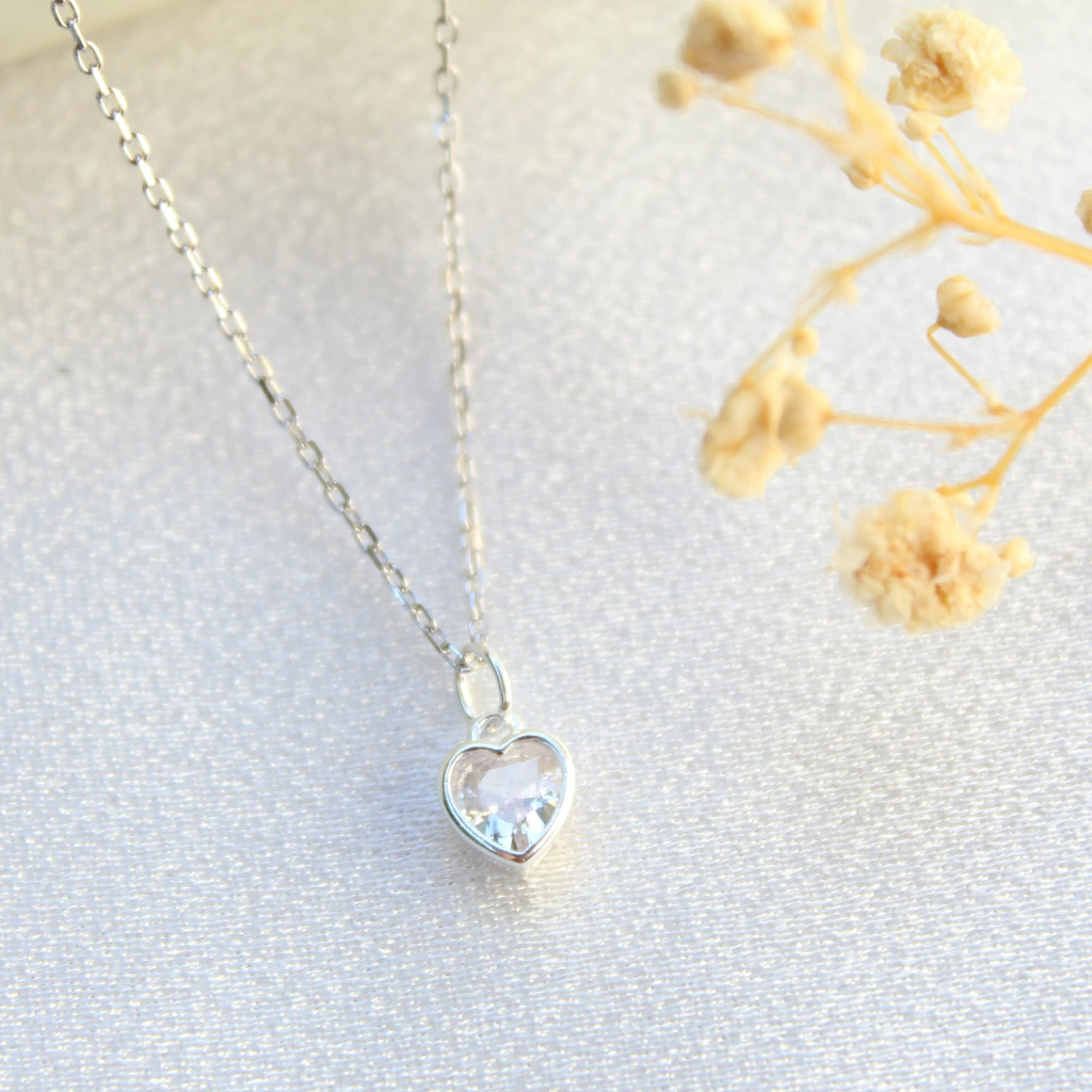Diseño de Corazón con circonita blanca. Largo 42 cm.