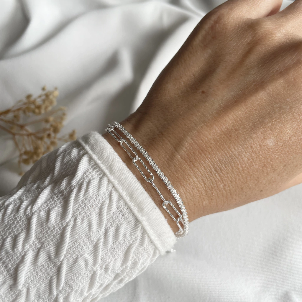 La Pulsera Dubla forma parte de la nueva colección de Plata de Brilla un Deseo. Su diseño fino y elegante, marca tendencia!