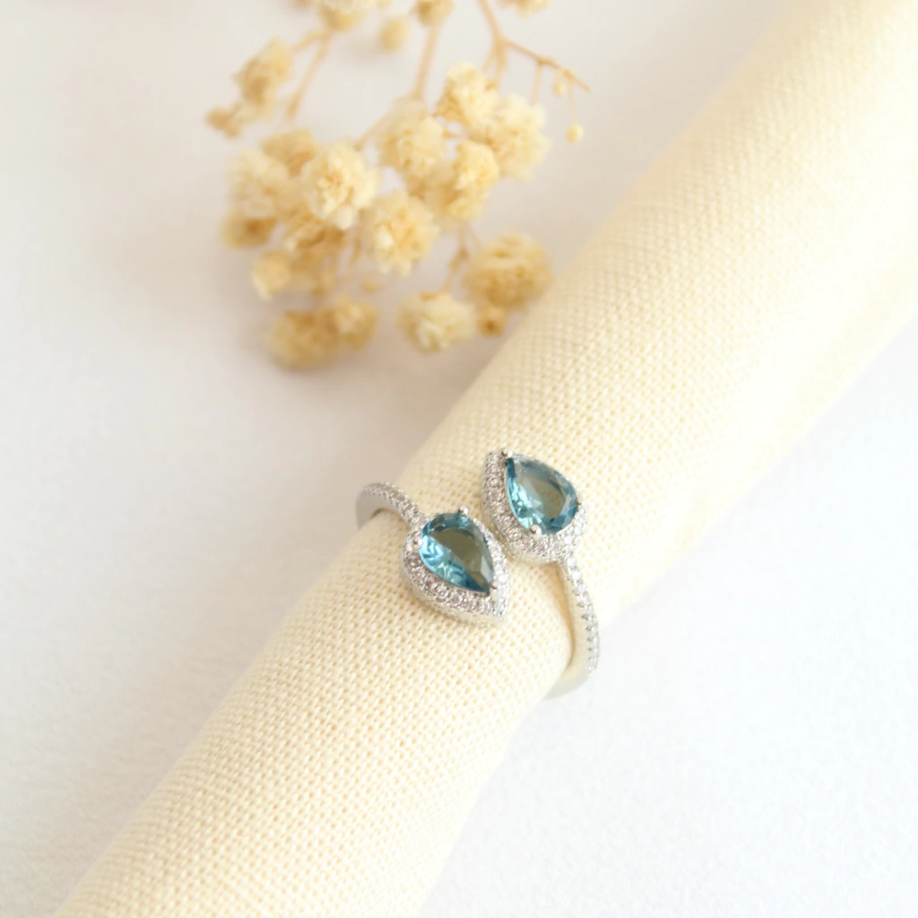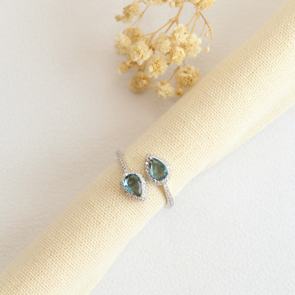 Diseño de doble gota de circonita azul y circonitas blancas. Regulable.