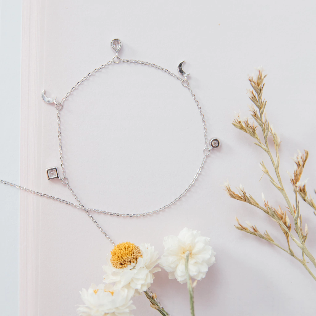 Diseño de Lunas y circonitas blancas. Regulable hasta 42 cm.